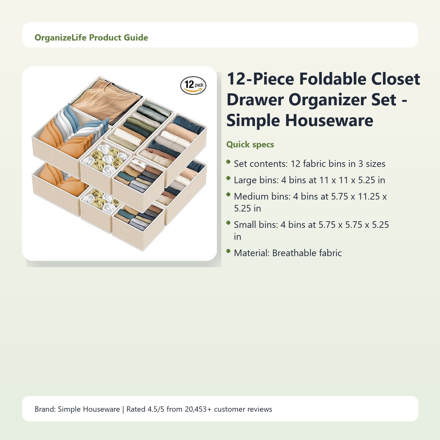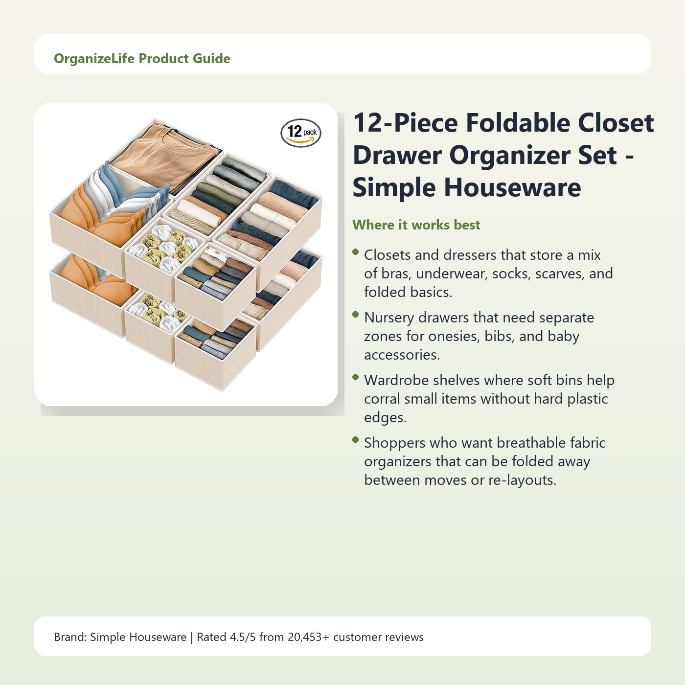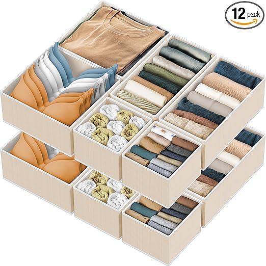 12-Piece Foldable Closet Drawer Organizer Set – Simple Houseware Fabric Bins